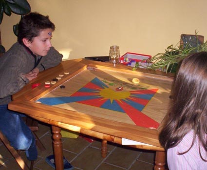 Et voilà 7 carroms de fabrication Aoustoise Pour celles et ceux qui souhaitent en réserver un, c'est tout de suite, avant le 20 novembre, car ensuite ils partent en magazin . Chaque modèle est unique et entièrement fabriqué main . Les prix sont variables suivant les essences utilisées et les motifs . Voici leurs descriptions : -1039