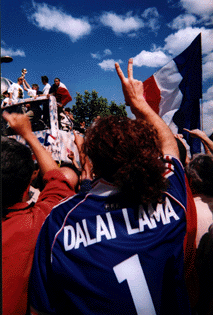 Italie-Autriche, et le drapeau tibétain au pied du tableau des scores