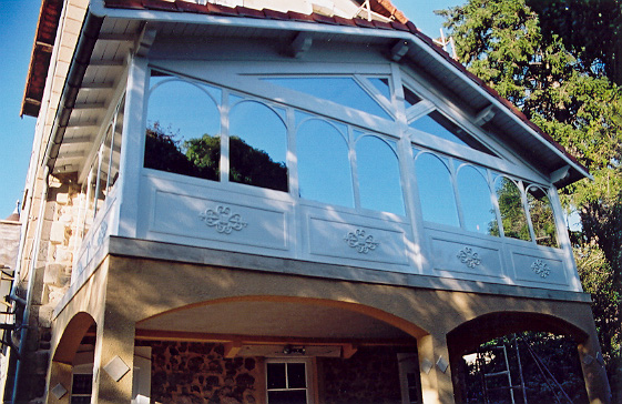 Construction d'une véranda, dans le cadre de son boulot. 200 h de travail (80 h de fabrication en atelier + 120 h de pose). Bel ouvrage, n'est ce pas ?